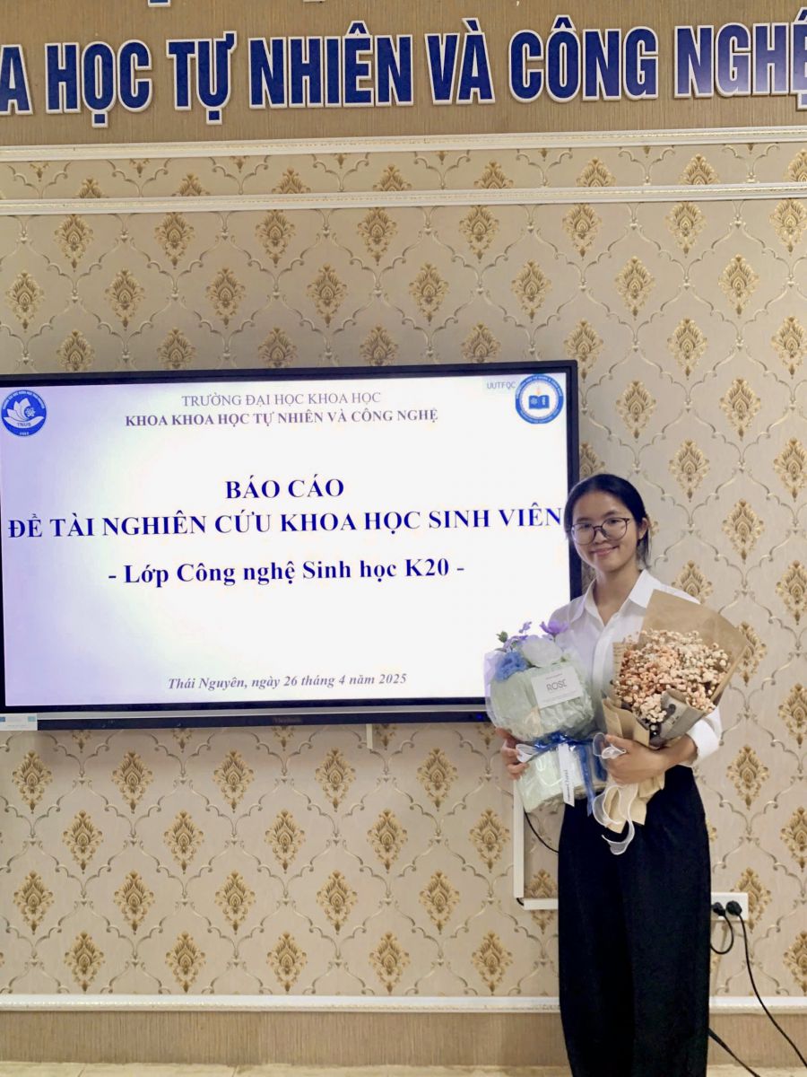 Với sự nỗ lực bền bỉ và niềm đam mê nghiên cứu, Thu Hương đã bảo vệ thành công đề tài nghiên cứu khoa học sinh viên, được xếp loại Xuất sắc, đồng thời là đồng tác giả của 3 bài báo khoa học quốc tế uy tín thuộc nhóm Q1/Q2 trong hệ thống Web of Science/Scopus.